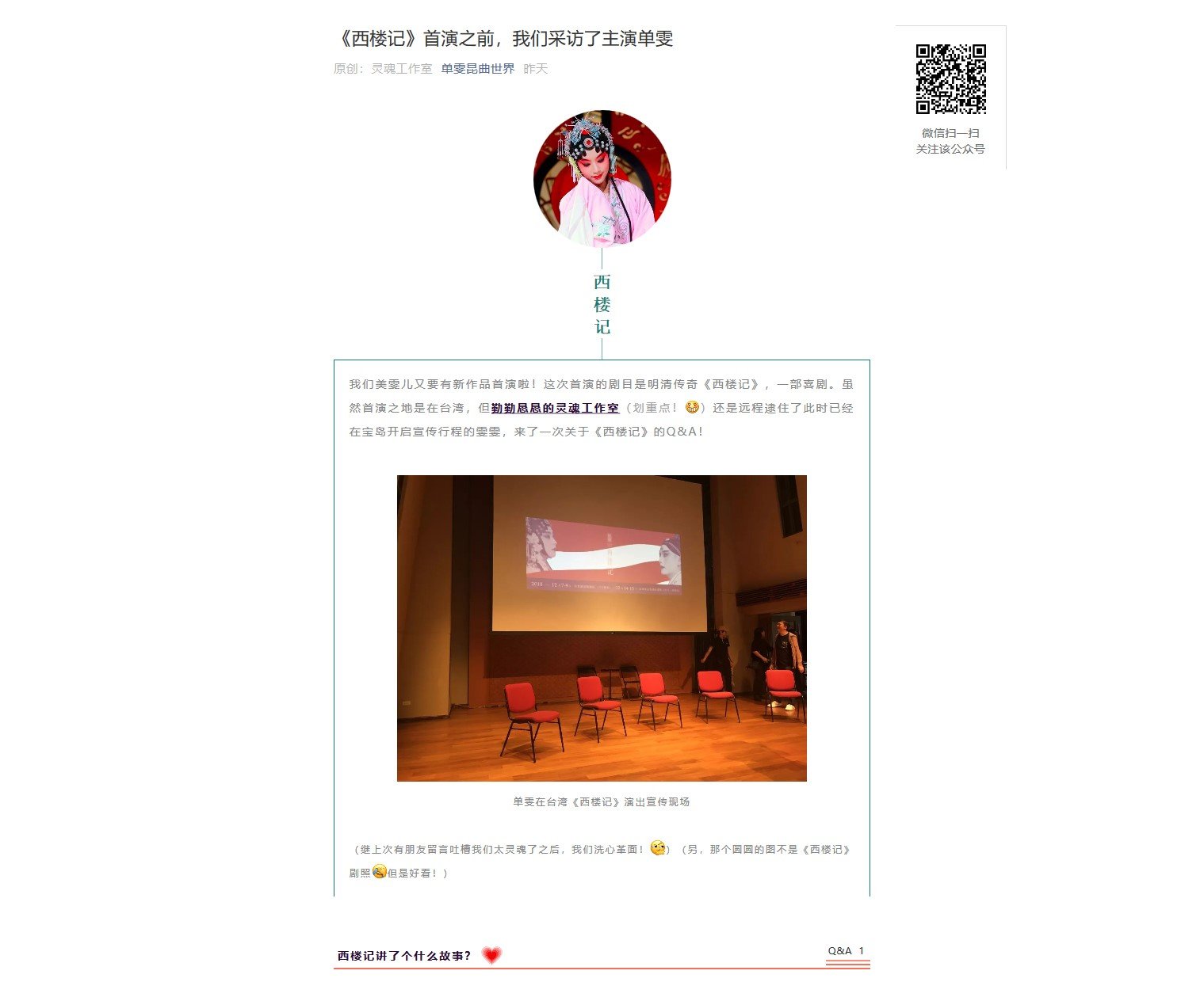 最新動態 Previous Next 《西楼记》首演之前,我们采访了主演单雯 events 演出 05 十二月 2018 點擊數: 899 Email 《西楼记》首演之前,我们采访了主演单雯 上一篇 下一篇 tweet