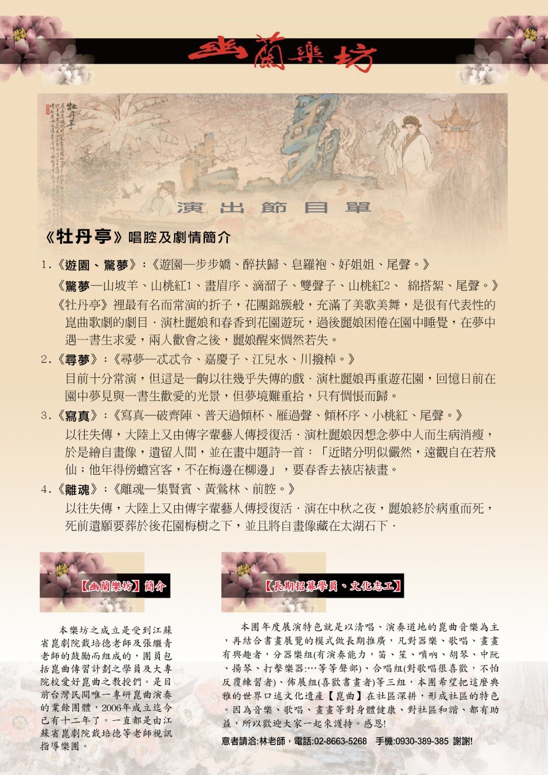 2018年崑曲年度展演「幽蘭雅韵」清唱音樂會 article reports and propaganda posters 文章報導和宣傳海報 17 十月 2018 點擊數: 866 Email 演出日期:2018.10.21(日)下午14:15~16:30地點:大稻埕戲苑一曲藝場 (台北市大同區迪化街一段21號8樓) 上一篇 下一篇 tweet